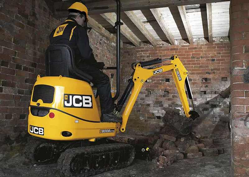 JCB 8008 Minibaggerbagger mieten mit nur 943 Kg Betriebsgewicht.